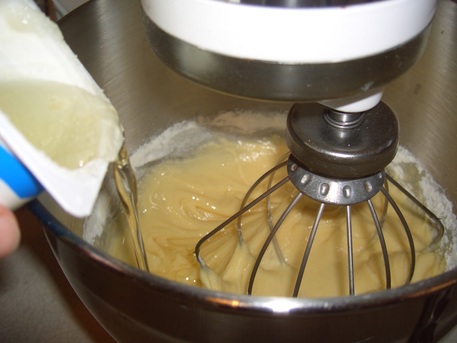 And add the flour, with the baking powder...